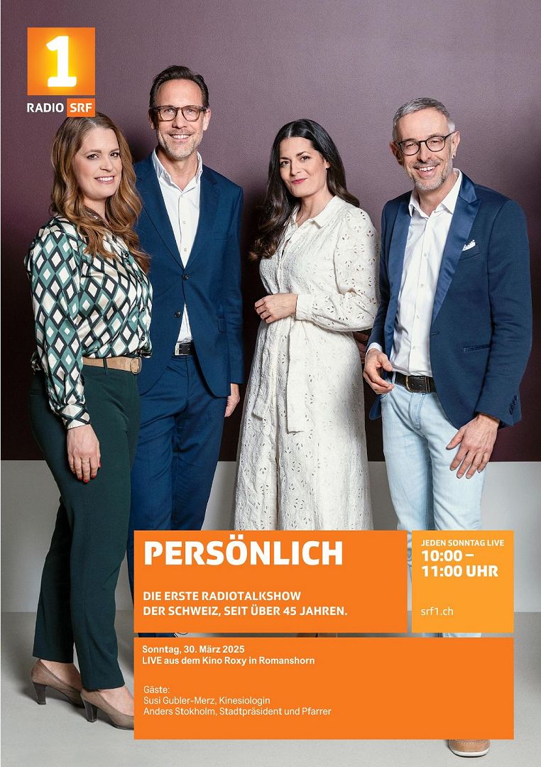 Die Radio-Talkshow «Persönlich» wird live aus dem Kino „Roxy“ gesendet | Der Anlass ist öffentlich und der Eintritt ist frei | Keine Sitzplatz-Reservation | Türöffnung um 09:00 Uhr