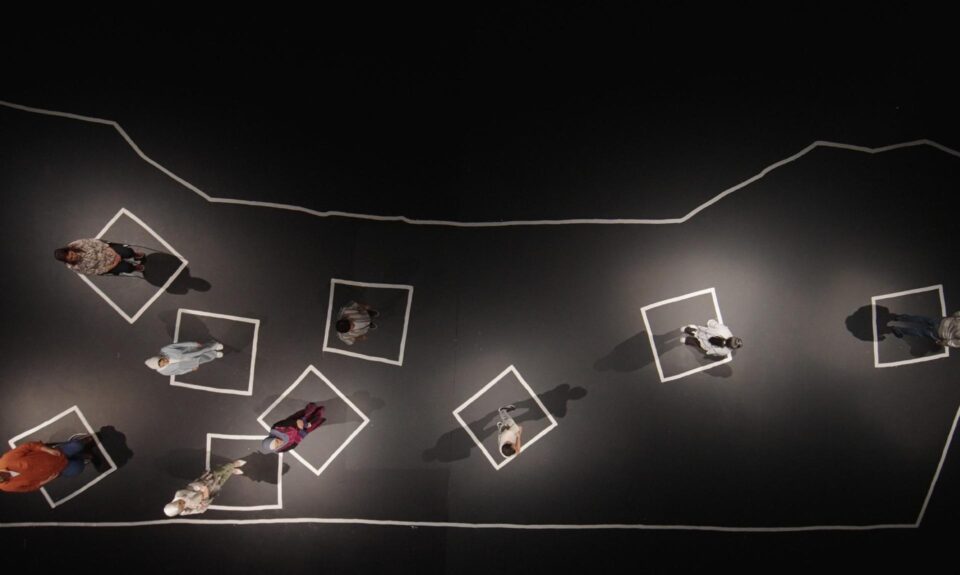 Eine Karte von Gaza, seinen Städten, Lagern und Stadtteilen. Weisse Farbe auf schwarzem Boden. In den notdürftig gezeichneten Umrissen erzählen neun Flüchtlinge, die der Hölle entkommen konnten. Ihr früheres Leben, den Verlust von geliebten Menschen. Existenzen, die unterdrückt, aber noch nicht in Schutt und Asche gelegt wurden. Indem sie ihre Geschichten teilen, versuchen die Protagonisten, sich wieder mit sich selbst zu verbinden, keine Geister mehr zu sein. Vielleicht kehren sie ins Leben zurück.